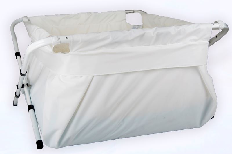En stor fordel er også at badekaret kan klappes sammen og hænges eller sættes væk, hvor det gamle kendte plastik badekar kun står og fylder op, når det ikke bliver brugt. Desuden kan posen nemt vaskes, hvis man synes at den er blevet for nusset.