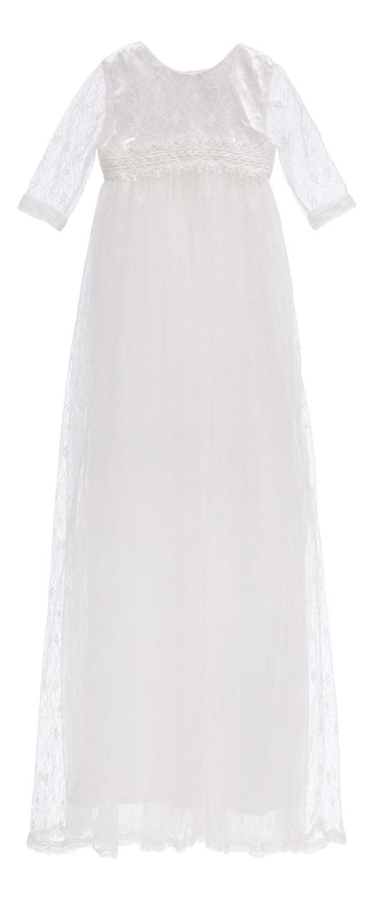 Smuk elfenbensfarvet dåbskjole med blonder.