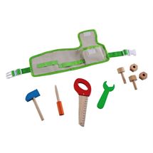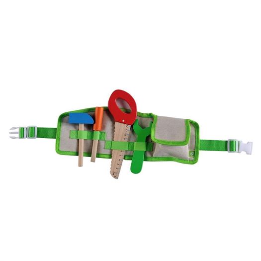 Det fine værktøjsbælte med værktøj giver barnet mulighed for at bruge sin fantasi og bygge forskellige ting.