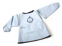 Forklædet har en ekstra stor opsamler lomme foran. Et praktisk forklæde som dit barn kan vokse i. Forklædet kan bruges fra baby begynder at spise grød og rigtig mad og op til 2 - 3 års alderen og kan derefter bruges i flere år uden ærmer.