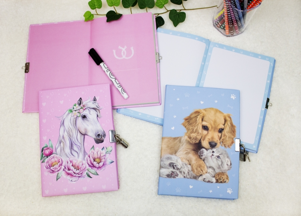 ✨ Dagbog med lås og motiv af hunde eller heste 🐶🐴