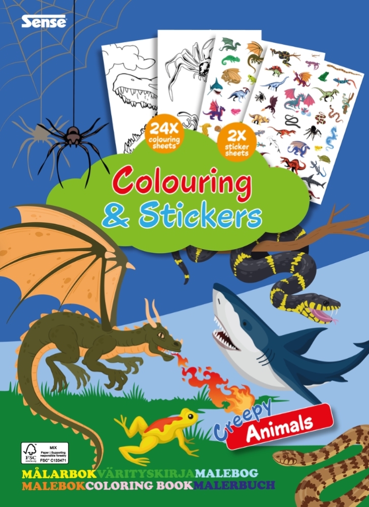 👻 SENSE - Malebog – Uhyggelige Dyr med Stickers FSC® 🦈🐍🎨
