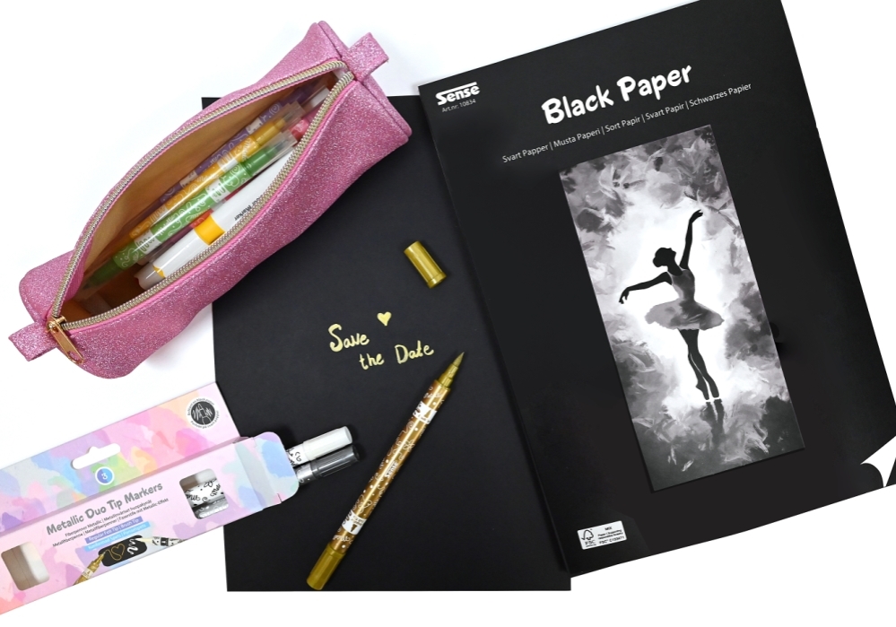De metalliske farver står smukt frem, især på sort papir, hvor effekten virkelig kommer til sin ret. 💫