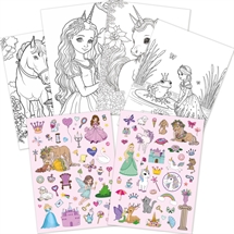🦄 Malebog med 24 sider fyldt med prinsesser, enhjørninger og magiske motiver – inkl. 2 ark klistermærker! FSC®-certificeret papir 🌸✨