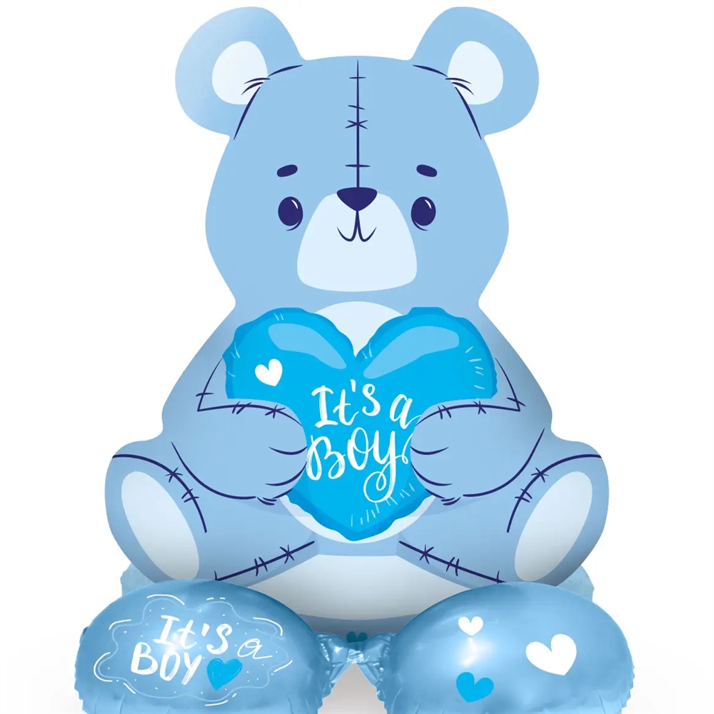 Folie Ballon med Base Bjørn 'Det er en dreng' Blå - 61 cm