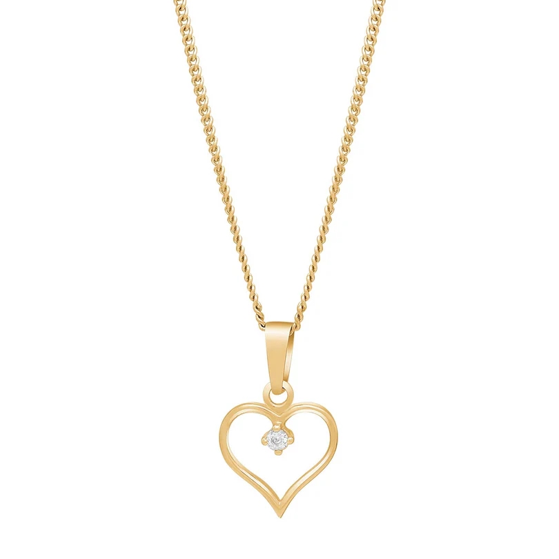 Smukt forgyldt sølvhjerte med funklende hvide kubiske zirkonia-sten.