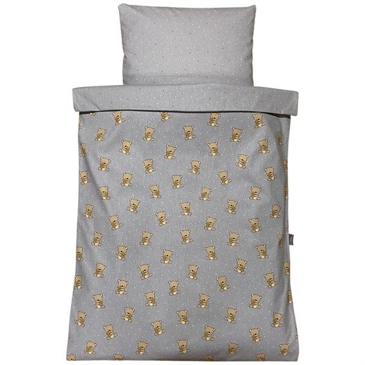 Pude og dynebetræk med de sødeste bamse. Grå ORGANIC