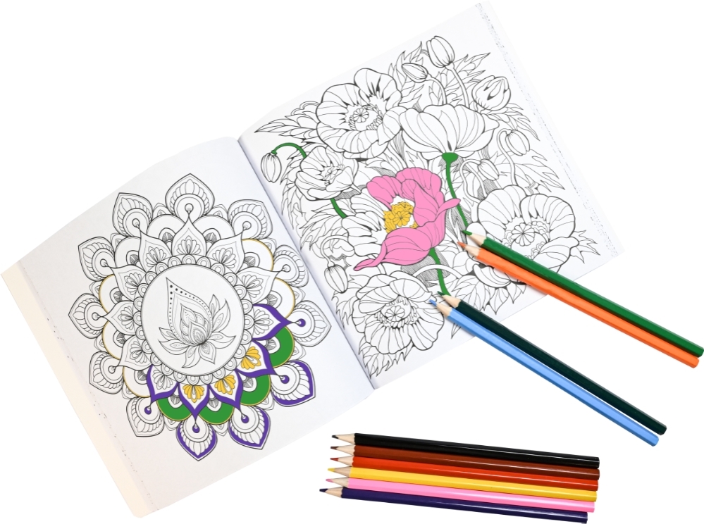 Sættet indeholder en mandala-malebog fyldt med smukke mønstre og detaljer samt 10 farverige træfarveblyanter, så du kan skabe dine egne farverige kunstværker 🌈🖍️