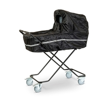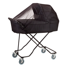Med praktisk opbevaringskurv til barnets ting, dyne, bamse, myggenet eller andet.
