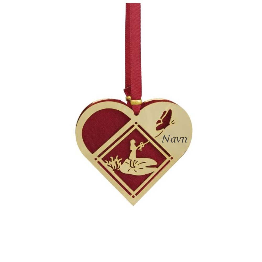 Smukt, forgyldt HC Andersen julehjerte med Tommelise fra Nordahl Andersen med graveret fornavn og dato.