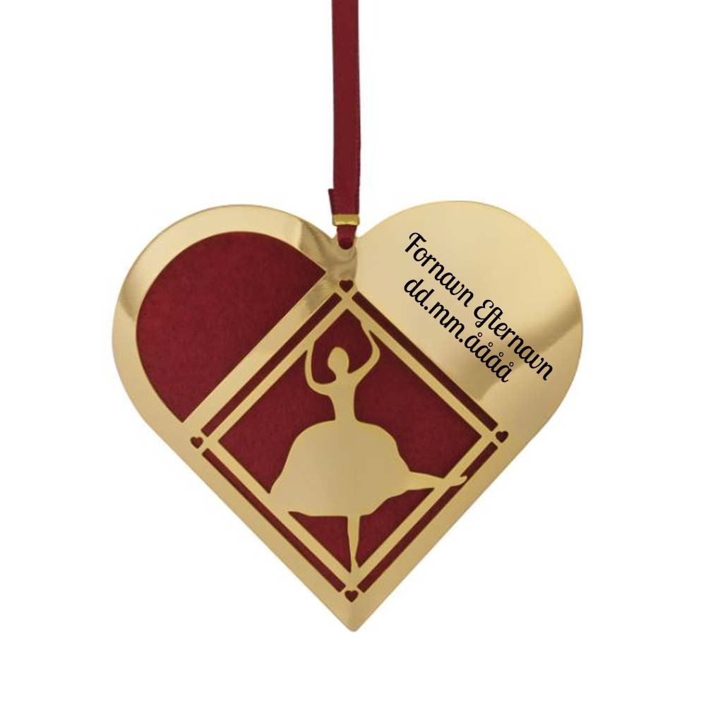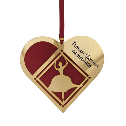 X Forgyldt julehjerte Ballerina 8 cm med graveret navn og dato