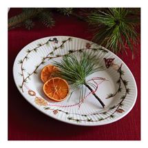 Hammershøi Christmas byder julen velkommen med en række nye illustrationer på udvalgte dele af det populære julestel. De fine, detaljerede julemotiver er skabt af kunstneren Rikke Jacobsen, som med sin karakteristiske streg fortæller små historier med bl.a. kræmmerhuse, engle, valnødder, fugle, kogler og stjerner. Brug det smukke, ovale Hammershøi Christmas bordfad til alle julens fester – sammen med matchende Hammershøi Christmas-tallerkener eller i et miks med klassiske, hvide Hammershøi-tallerkener.