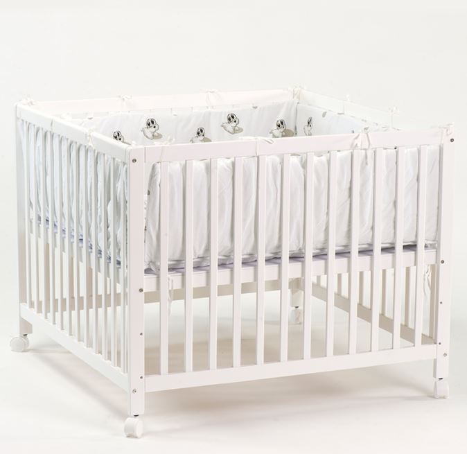 Kravlegårdstæppet er designet med bund, sider og bindebånd, så det kan fastgøres i kravlegården.