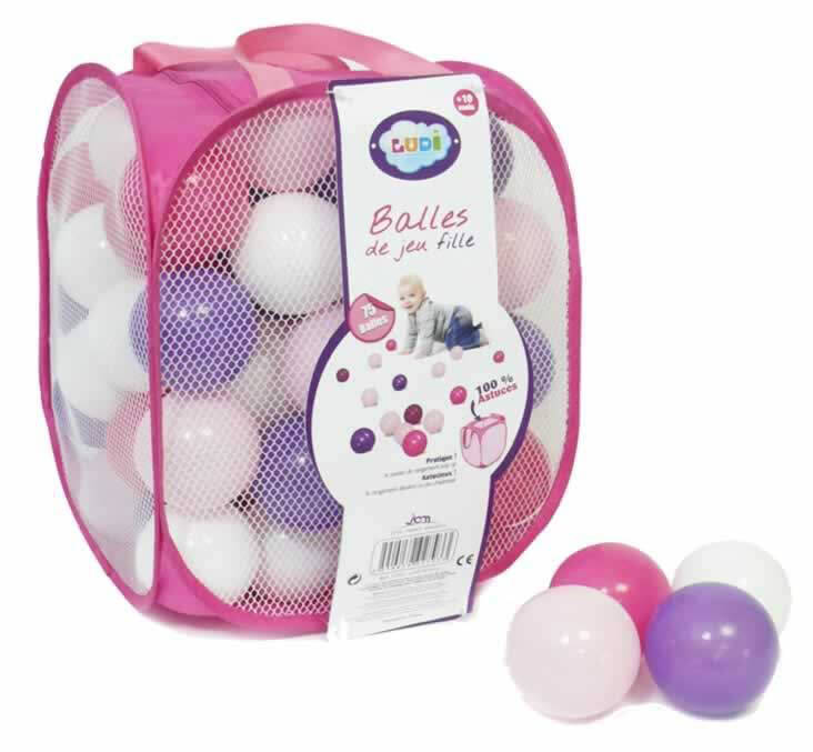 Legebolde i opbevaringsnet 75 stk, Pink - Ludi