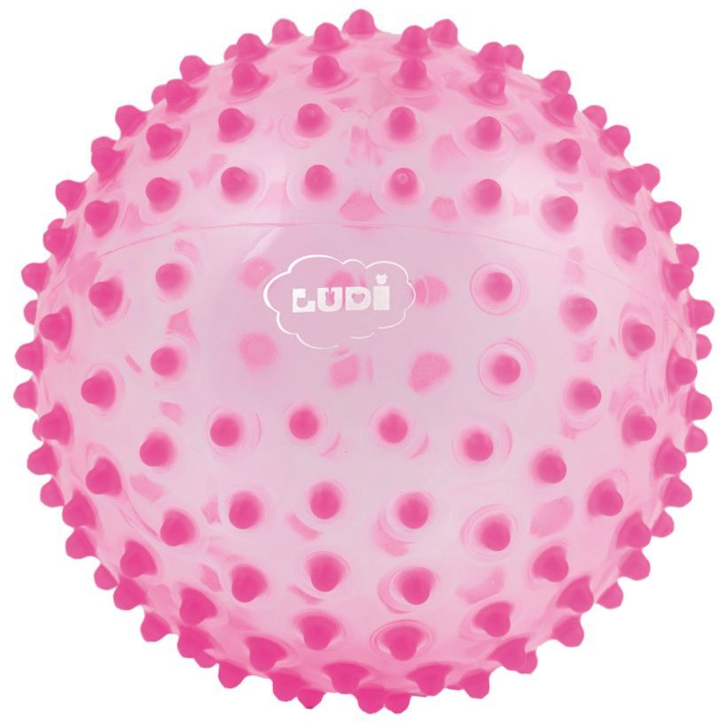 Blød sansebold på 20 cm i diameter. Bolden har små massage knopper, som er gode til at massere og stimulere babys krop, fødder og hænder. Dit barn vil elske at få massage - eller få lov til at give mor eller far.