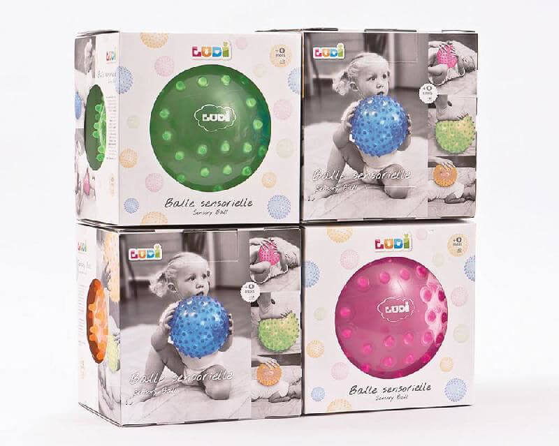 Sansebolden er også et hit at lege og spille med enten alene eller sammen med dig. Størrelsen på bolden passer perfekt til små børnehænder.