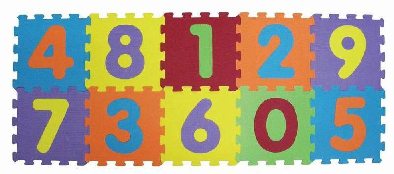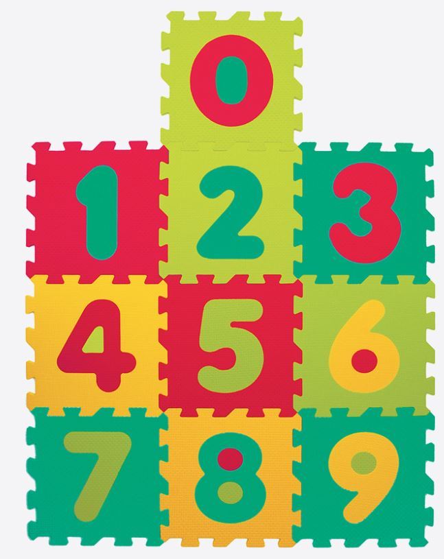 Skumlegetæppe med 10 felter med tallene 0 til 9