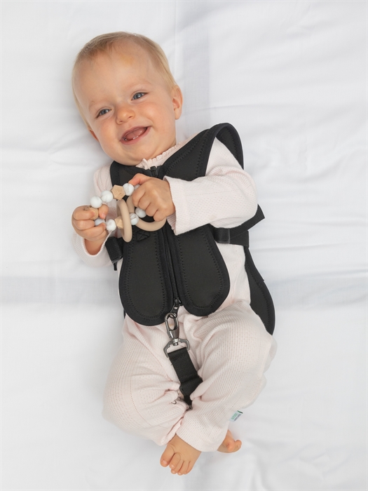 Sleep Well vesten forhindrer dit barn i at falde ud af sengen og sørger derfor for at alle får en bedre og dybere søvn.  Den tilbyder en god bevægelsesfrihed og skaber et velkendt sovemiljø i barnets hjerne, hvor dit barn føler sig tryg.